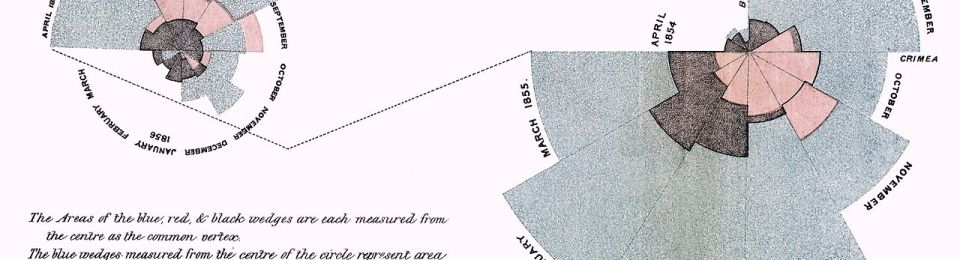 Enquanto Snow combatia a cólera em Londres, Florence Nightingale, uma mulher extraordinária, estava a revolucionar os cuidados de saúde nos campos de batalha da Guerra da Crimeia. Nightingale percebeu que mais soldados morriam de doenças do que de ferimentos de guerra. Ela decidiu recolher dados sobre as causas de morte e apresentá-los de forma visual, criando os primeiros gráficos estatísticos usados em Saúde Pública.